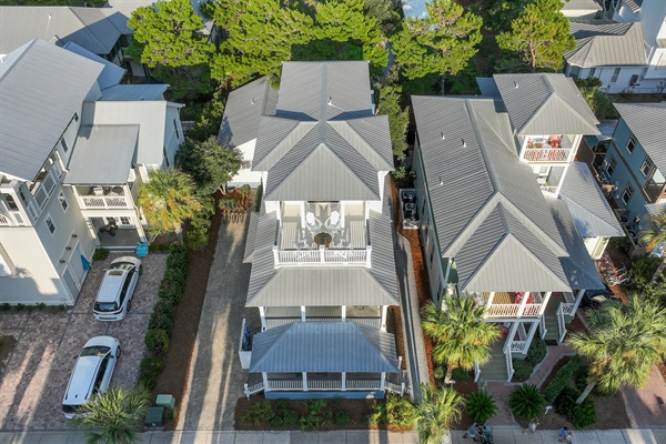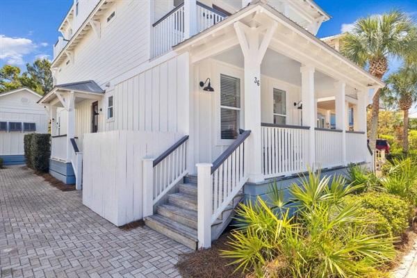 Bright 3-story home with separate carriage house, multiple porches and walkable access to the beach, pool, green space, restaurants and shops.
